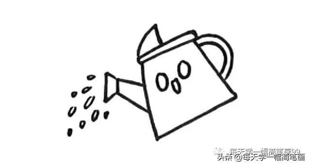 6.在水壶下方画一些小苗,然后用波浪线表示土地。