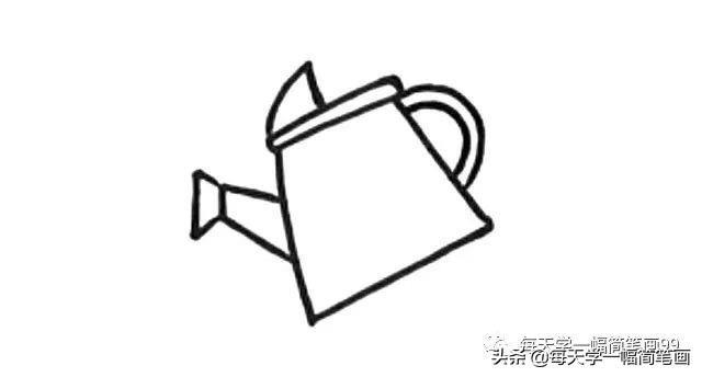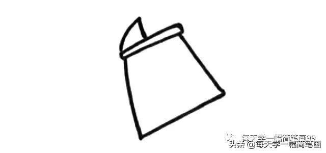 1.先画一个倾斜的梯形,是水壶的身体部分。
