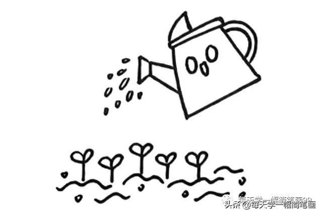 每天学一幅简笔画-给土地里的树苗浇水简笔画教程