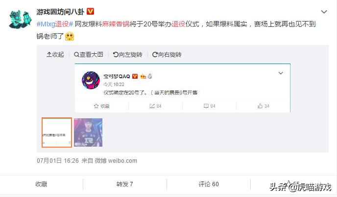 而最近有个大v作者再次爆料,麻辣香锅在20号举办退役仪式,8号开始售票,对于麻辣香锅这样的职业选手来说已经这么长时间没在赛场上出现过是非常不利的,退役可能是时间的问题。