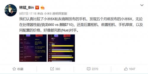 9月8日,小米总裁林斌发博称,五个月前发布的小米6 X完胜9月5日刚刚发布的荣耀8 X,消息一出引起轩然大波。数据证明,小米在前置相机、后置相机、手机厚度以及同配置的价格这几大核心方面都远超荣耀。