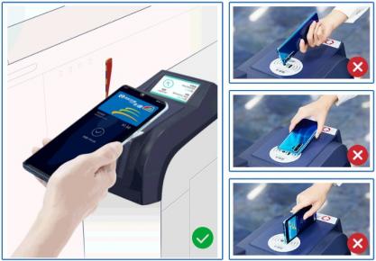 我们在刷卡的时候,无需解锁屏幕,也无需网络,用手机的背面靠上方,碰一碰刷卡区域就可以了。