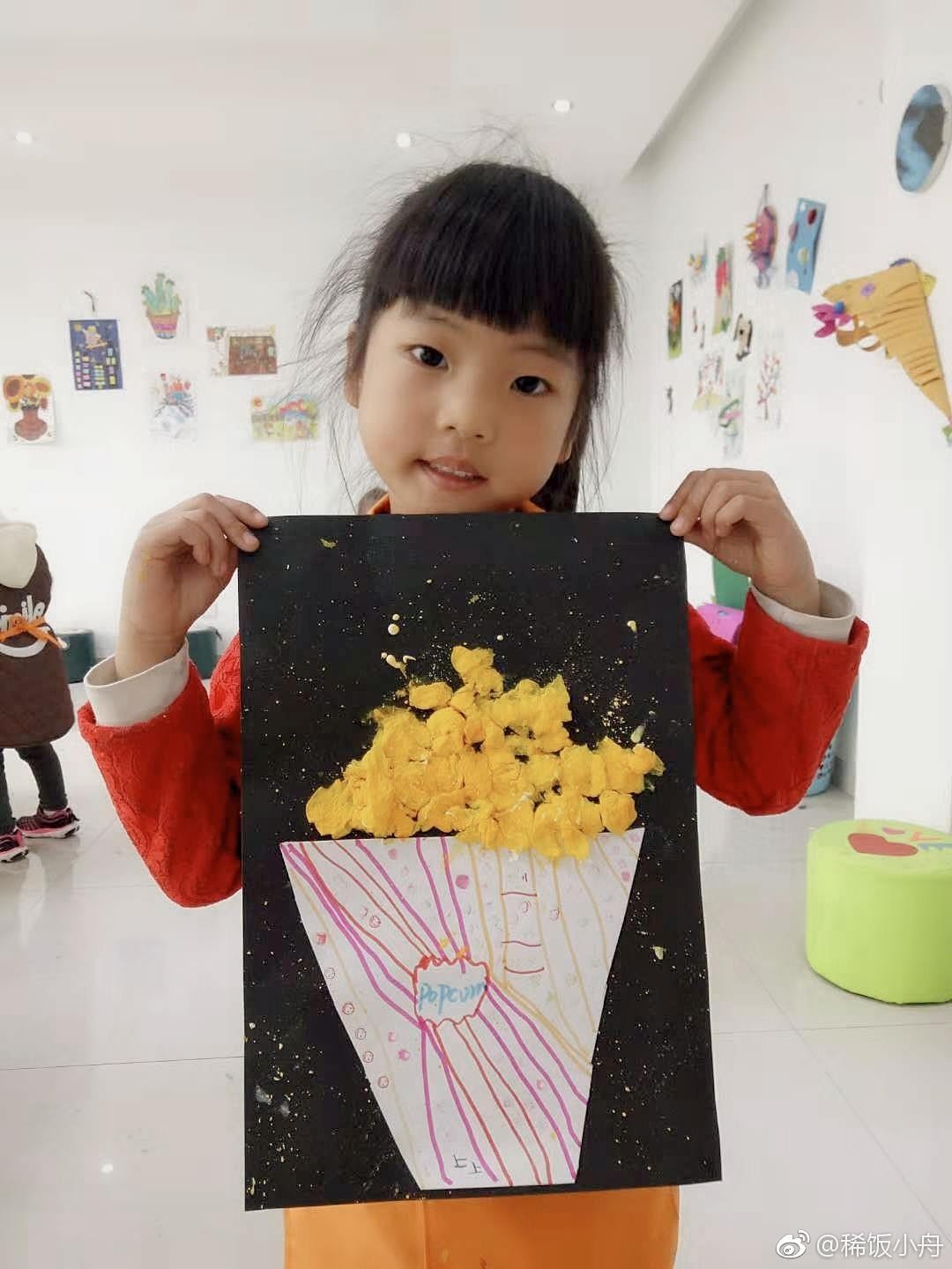 小上的创意美术画,每周一次,各种创意,各有千秋吧。她最喜欢的一个课程,从不缺课,特别喜欢。曾经我特别担心过早学画画会影响孩子的兴趣。这种创意手工还比较好,不会限制孩子的思考,完全可以按照自己的想法去做。