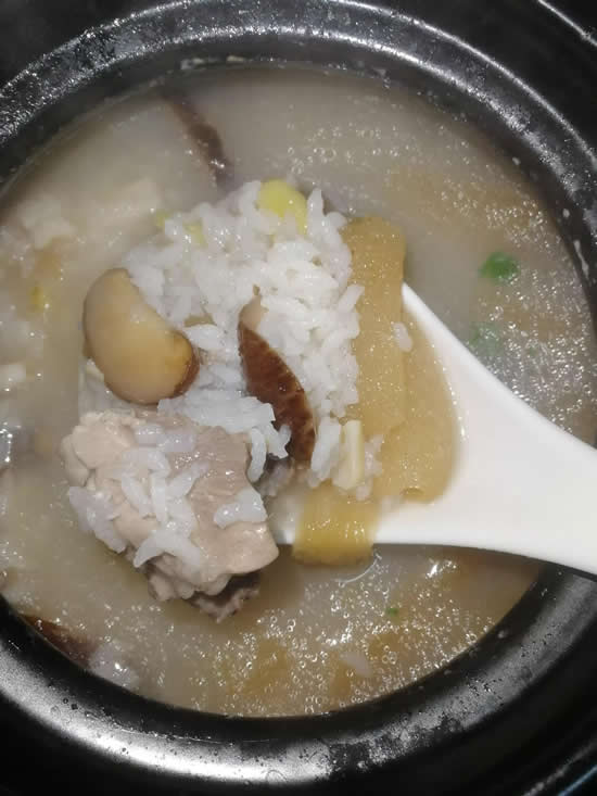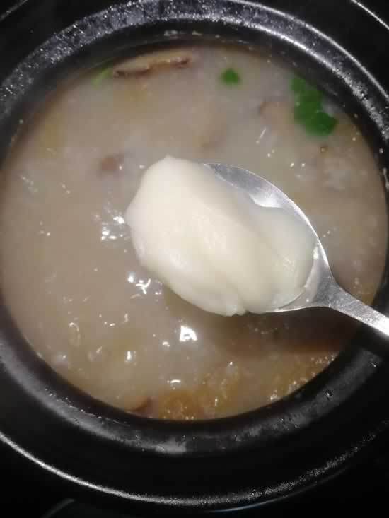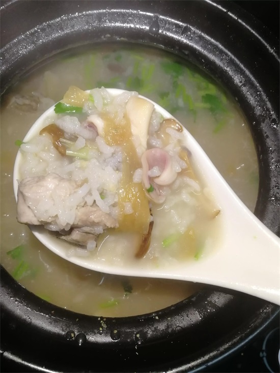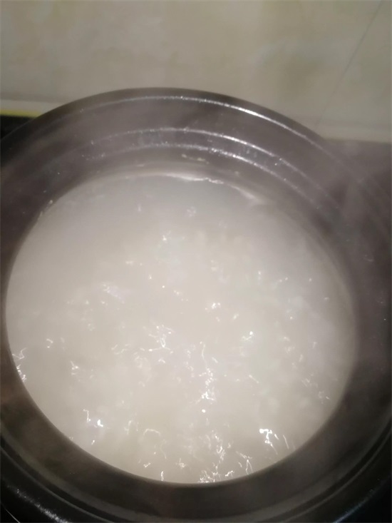 这时,取一勺猪油加入到粥水中,可以使米粥吃起来更加顺滑,没有就淋一勺油