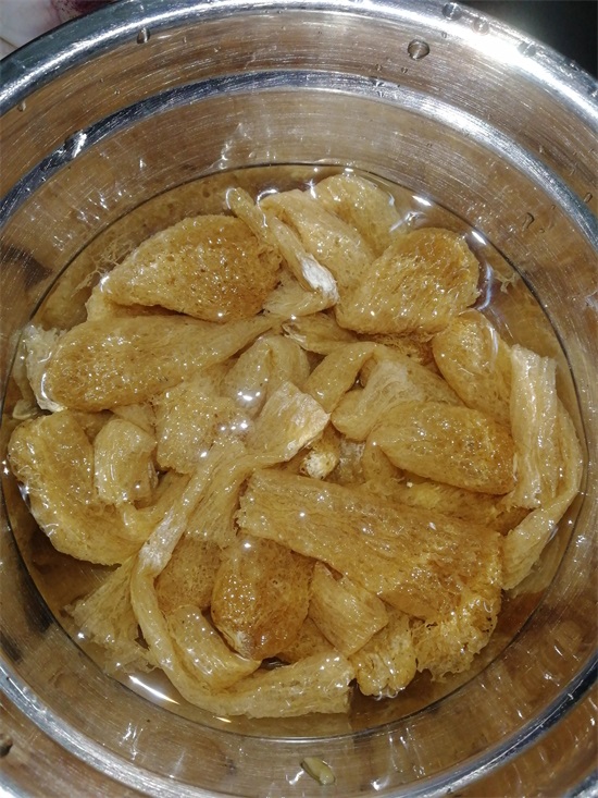 竹荪去掉伞帽,用温水加一勺盐泡发15分钟