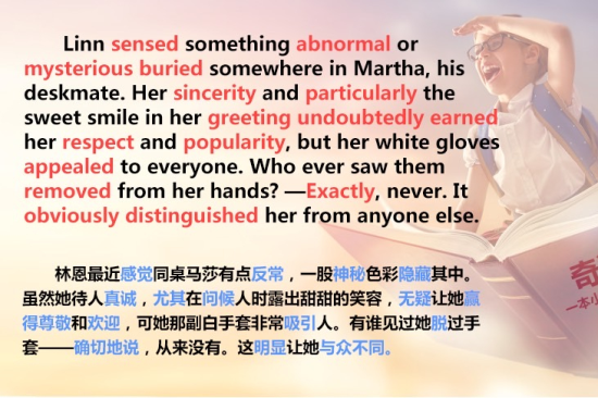 第二:做阅读先看题,带着问题去阅读。很多孩子是先阅读,再看题,这样会浪费很多时间,目的性不强。建议成绩一般的孩子先看题,把题目上的关键词勾出来,再去有目的性的阅读,这样阅读,英语文章很可能一遍就可以完全做出来,不再浪费时间。