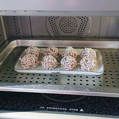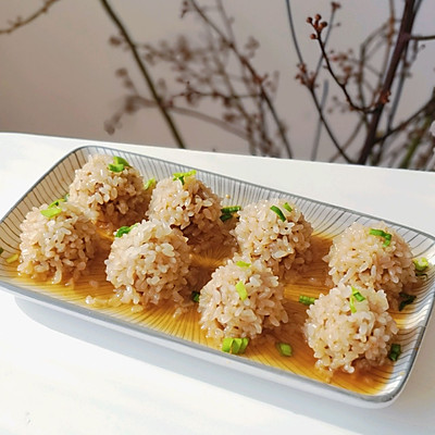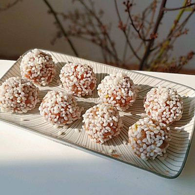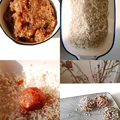 1、①糯米提前一夜浸泡 ②猪肉搅成泥,加调味料调味。 ③取一坨猪肉馅,滚成圆形,放入糯米中滚一圈,均匀沾上糯米。