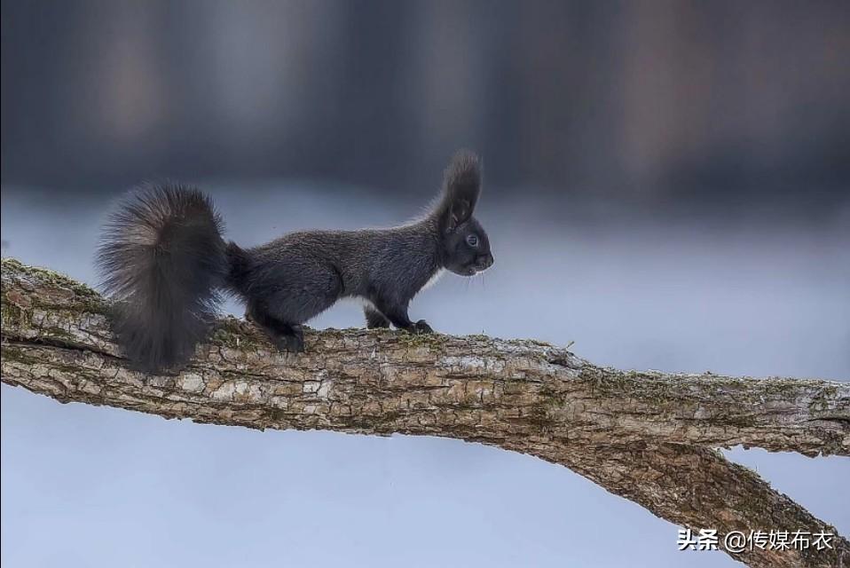 这只松鼠,穿件黑貂;上窜下跳,不停作妖。摄影:徐庆新