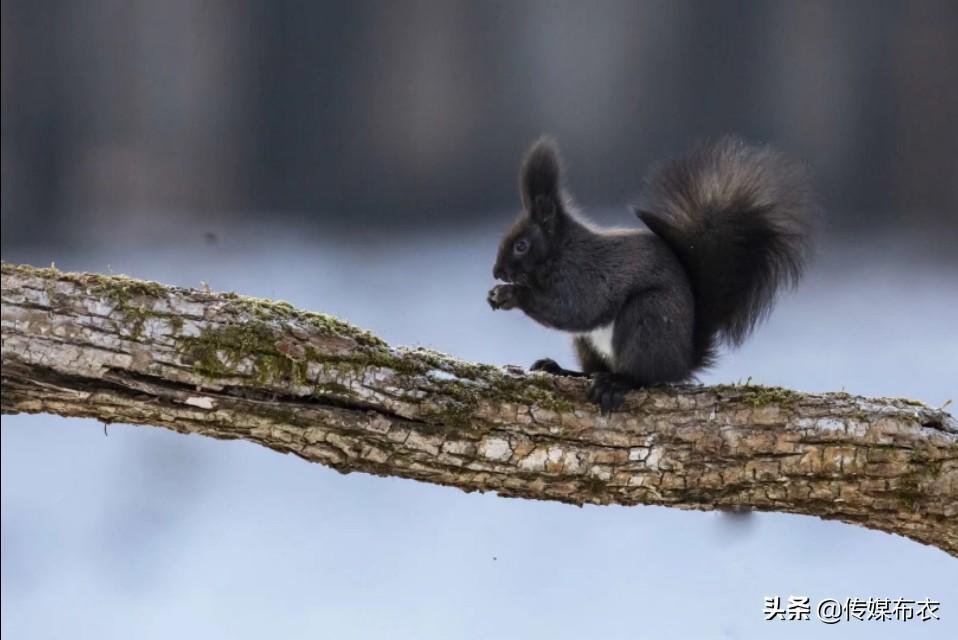 松鼠有一个共同的特征,就是尾巴大,像个扫帚,黑松鼠也不例外。摄影:徐庆新
