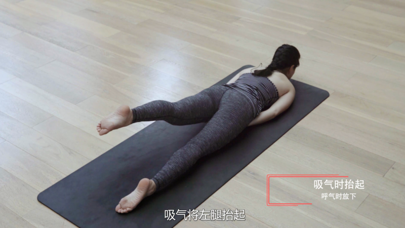 3、到下一次左侧完成以后,呼气时将臀部抬起,手放下,面部转向你的左侧,到面朝下休息。