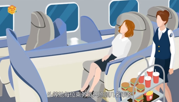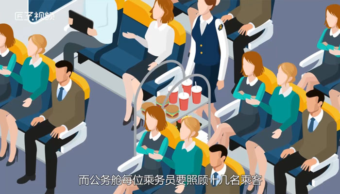 第二,公务舱和头等舱享受的服务不同:一般来说,头等舱每位乘务员只照顾几名乘客,而公务舱每位乘务员要照顾十几名乘客。