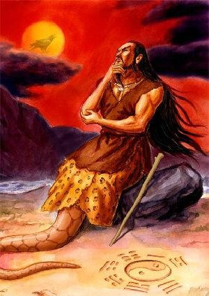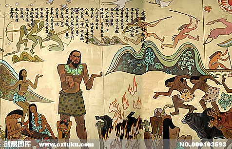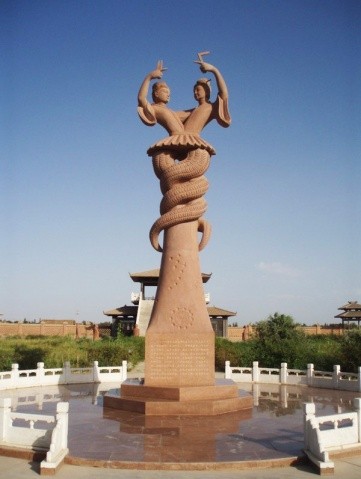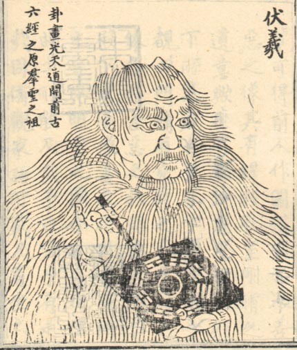 相传伏羲人首蛇身,与女娲兄妹相婚,生儿育女,他根据天地万物的变化,发明创造了占卜八卦,创造文字结束了“结绳记事”的历史。他又结绳为网,用来捕鸟打猎,并教会了人们渔猎的方法,发明了瑟,创作了曲子。伏羲称王一百一十一年以后去世,留下了大量关于伏羲的神话传说。