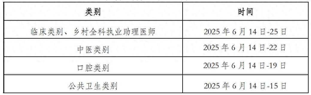 2025年医师资格技能考试时间:2025年6月14日-25日