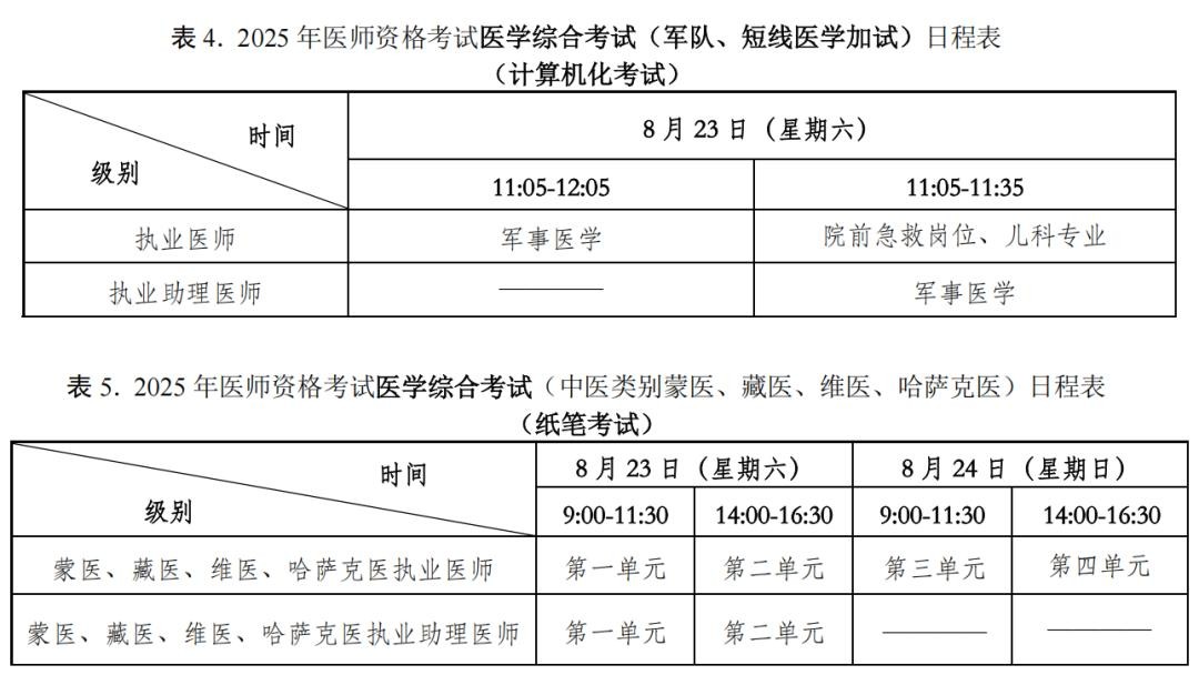 2025年医师资格考试实践技能考试时间,综合考试时间,二试考试时间安排如下: