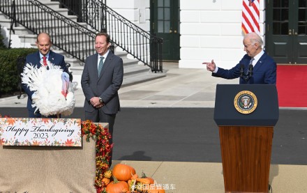 在感恩节即将来临之际,美国总统拜登20日在白宫“赦免”两只感恩节幸运火鸡“自由”和“铃铛”。拜登在火鸡“赦免”仪式上发表讲话,特别提及农业对于美国经济和民众生活的重要性。他同时向美国民众以及军队致以节日祝福。总统在感恩节前“赦免”火鸡是白宫一项节日传统。“自由”和“铃铛”是两只来自明尼苏达州的雄性火鸡。它们今年7月孵化,在大约20周的时间里体重超过了42磅(约19公斤)。(中新社记者 陈孟统)