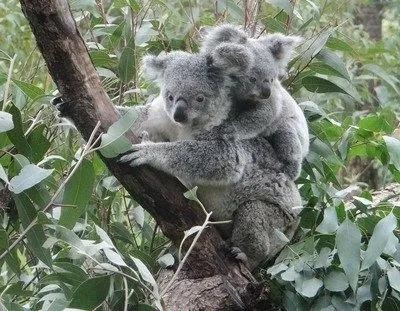 树熊喜欢抱抱,相信很多女生也一样安全感,抱抱就是它唯一安全感,从大到小都要抱,不是抱树,就是抱树熊爸,等,它们躲在树上懒得下来,懒得理你。