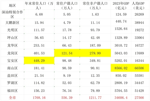 首先来看看人口,深圳特区常住人口1768.16万人,户籍人口556.39万人,本地人占比只有31.5%,深圳可称得上全中国的深圳。