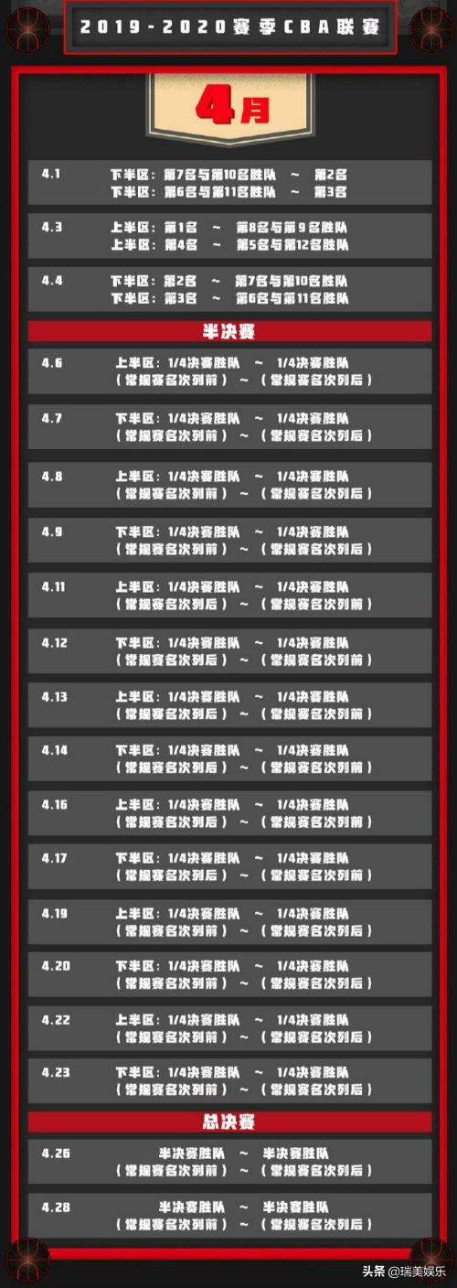 4月赛程表