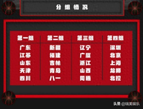 其中广东男篮被分到第一组: