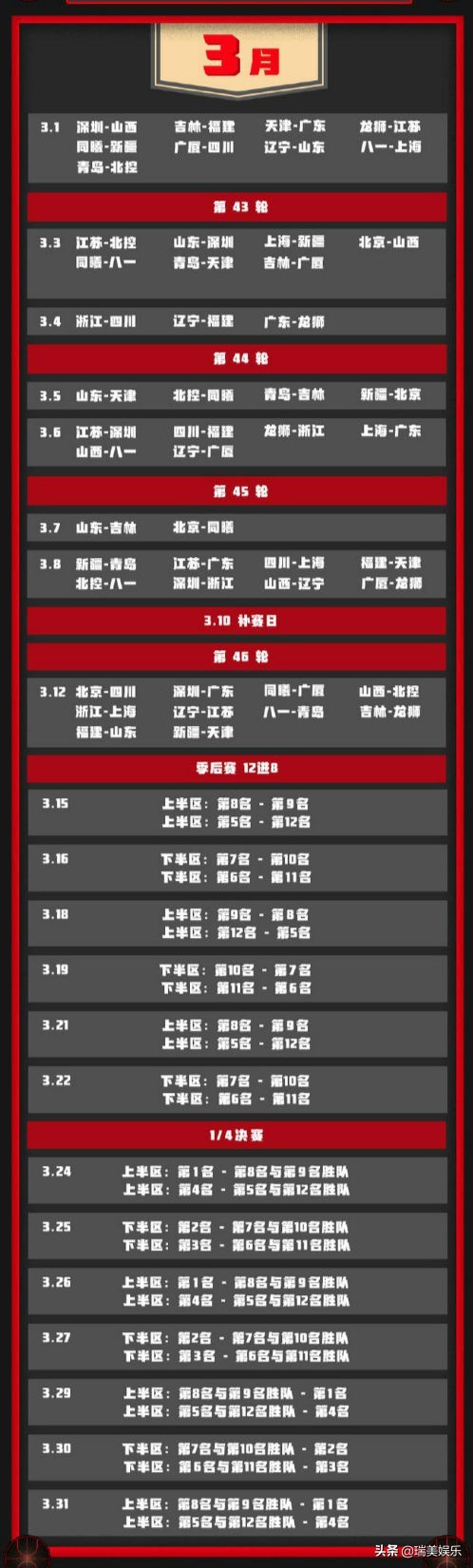 3月赛程表