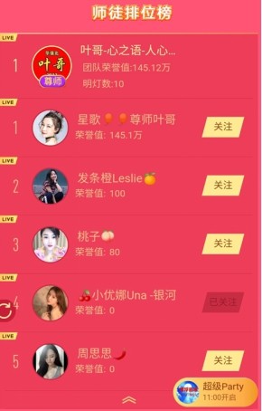 上周五,陌陌平台2019年年度盛典第一季度超级party潜力新秀赛正式拉开了序幕。经过两天的激烈争夺,超级party潜力新秀赛目前已经结束了第二阶段的争夺,导师叶哥携手自己的徒弟小优娜以第一名的成绩晋级。