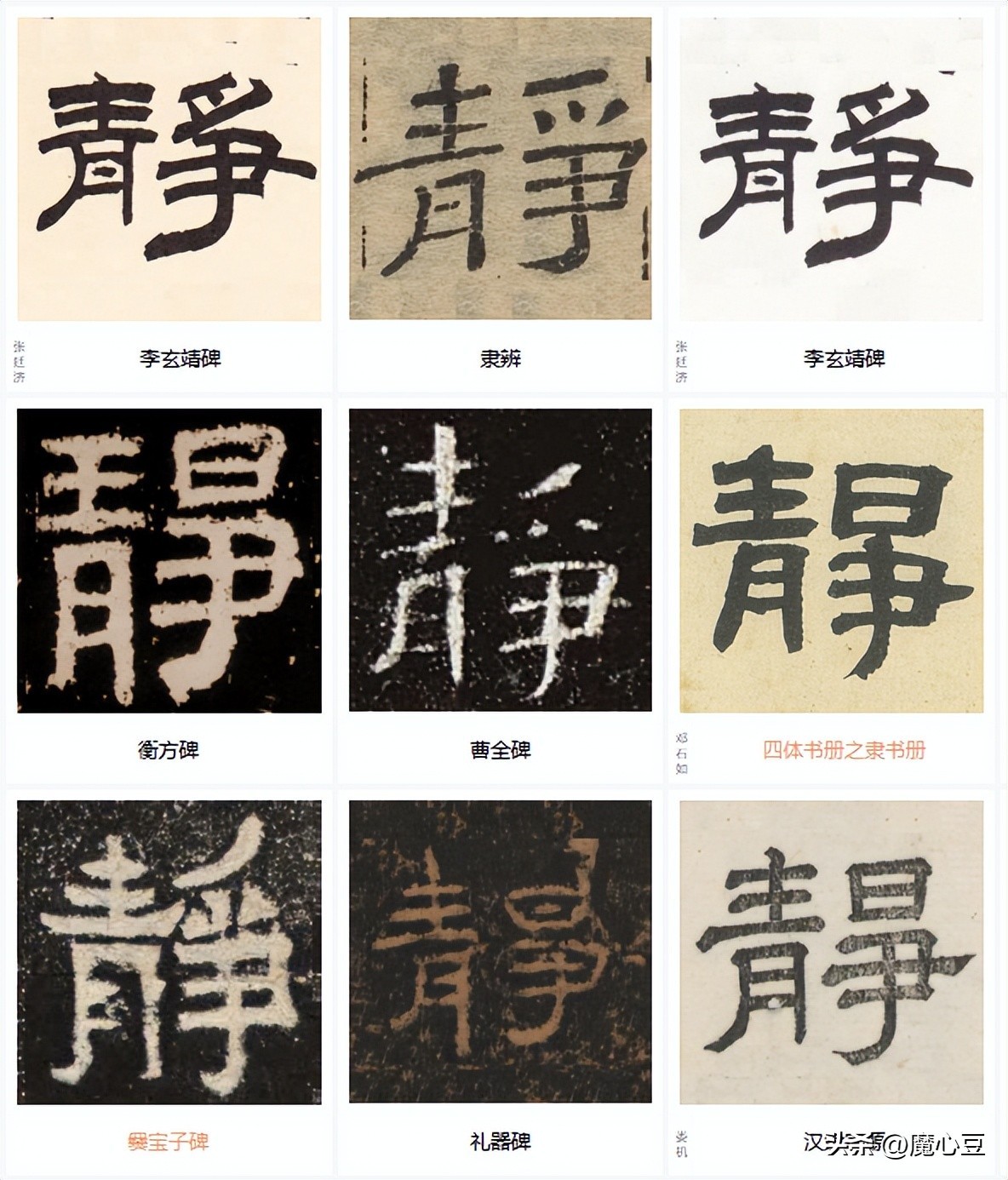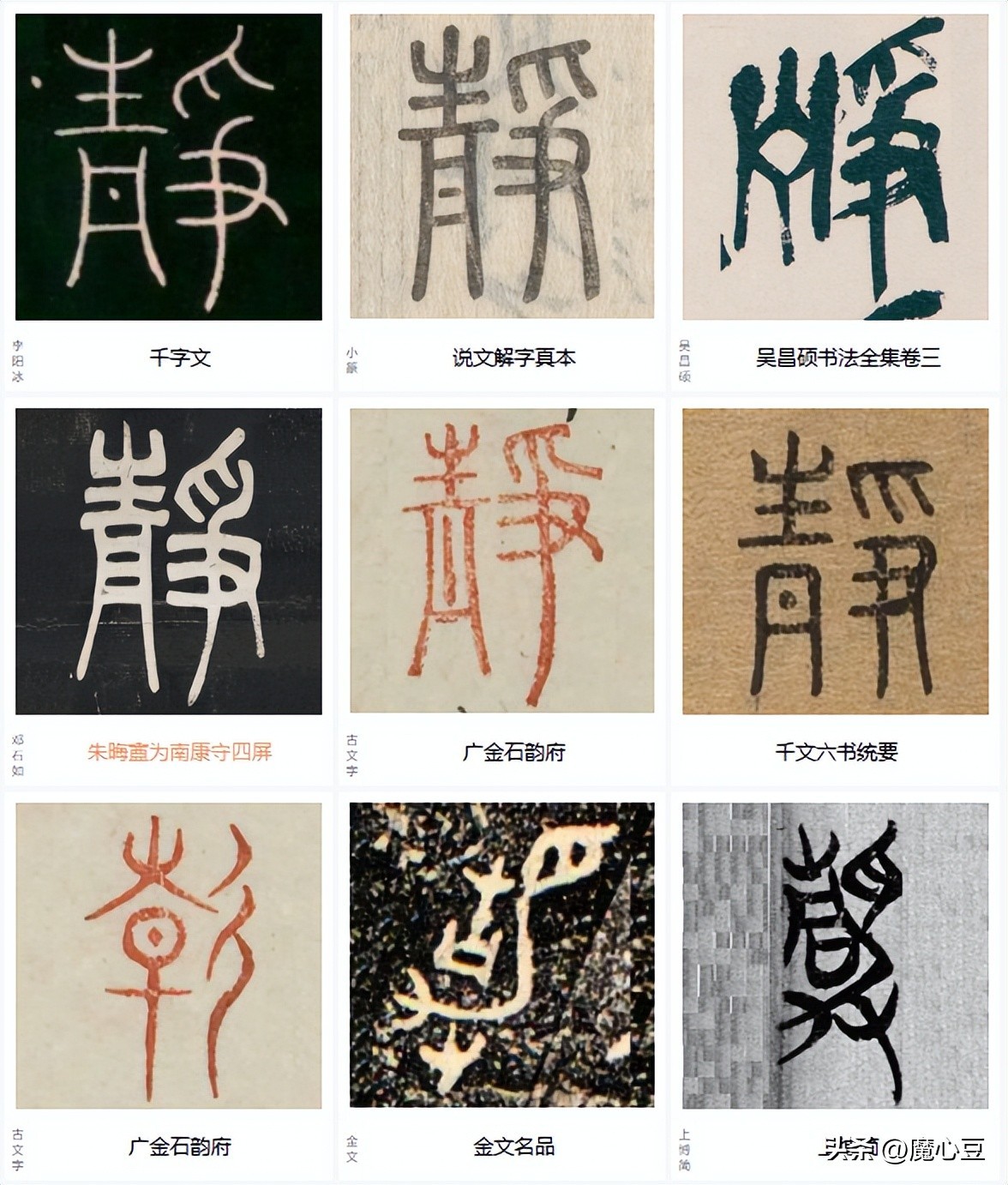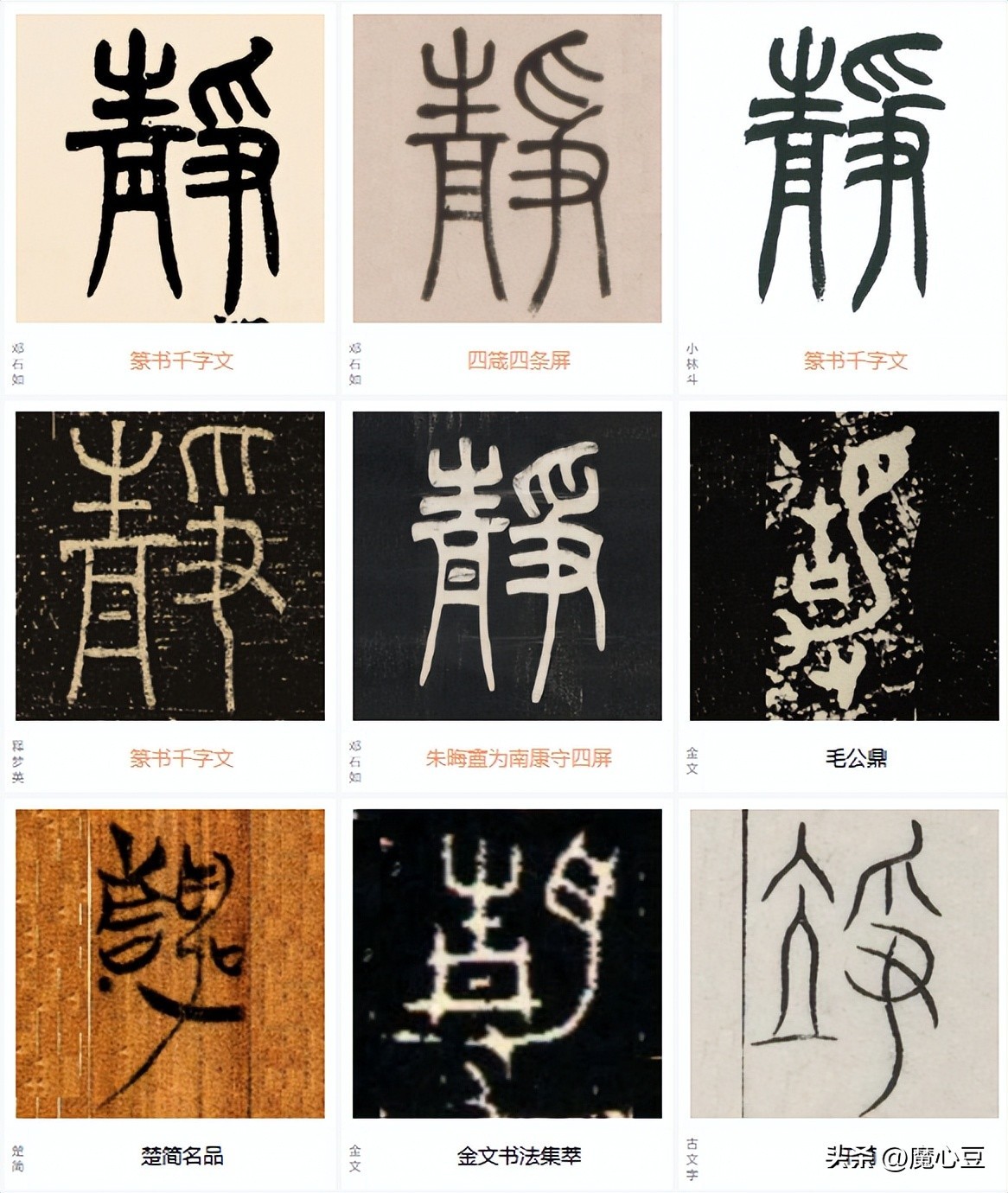 每日一字|“静”字的篆、隶、楷、行、草书写法(高清版)