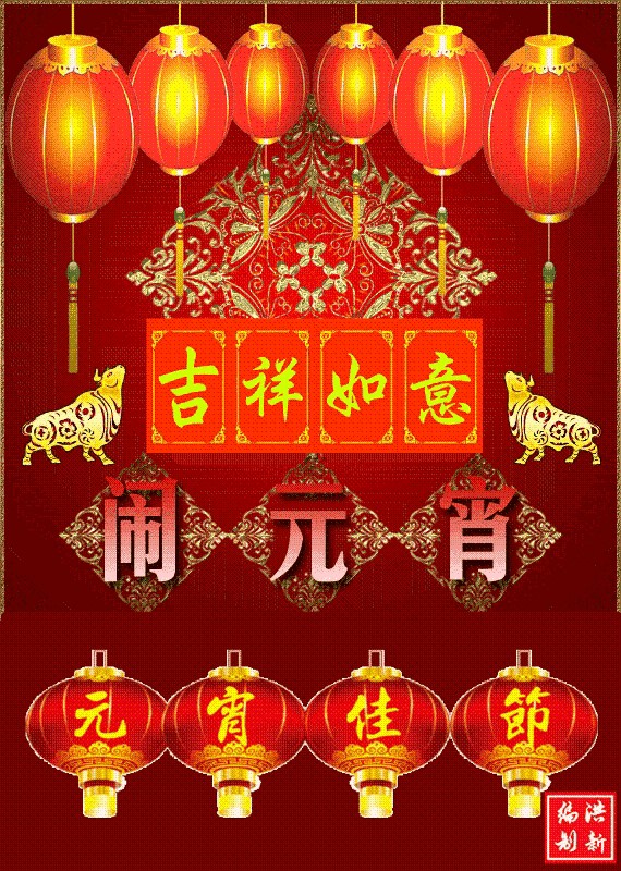 正月十五元宵节祝福动态图。元宵佳节吉祥如意事事顺心动图