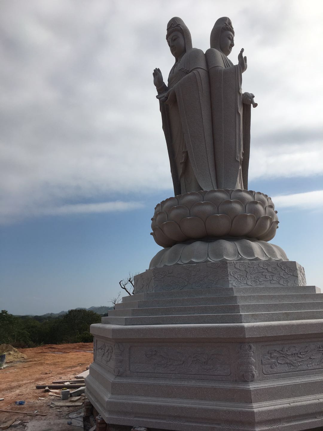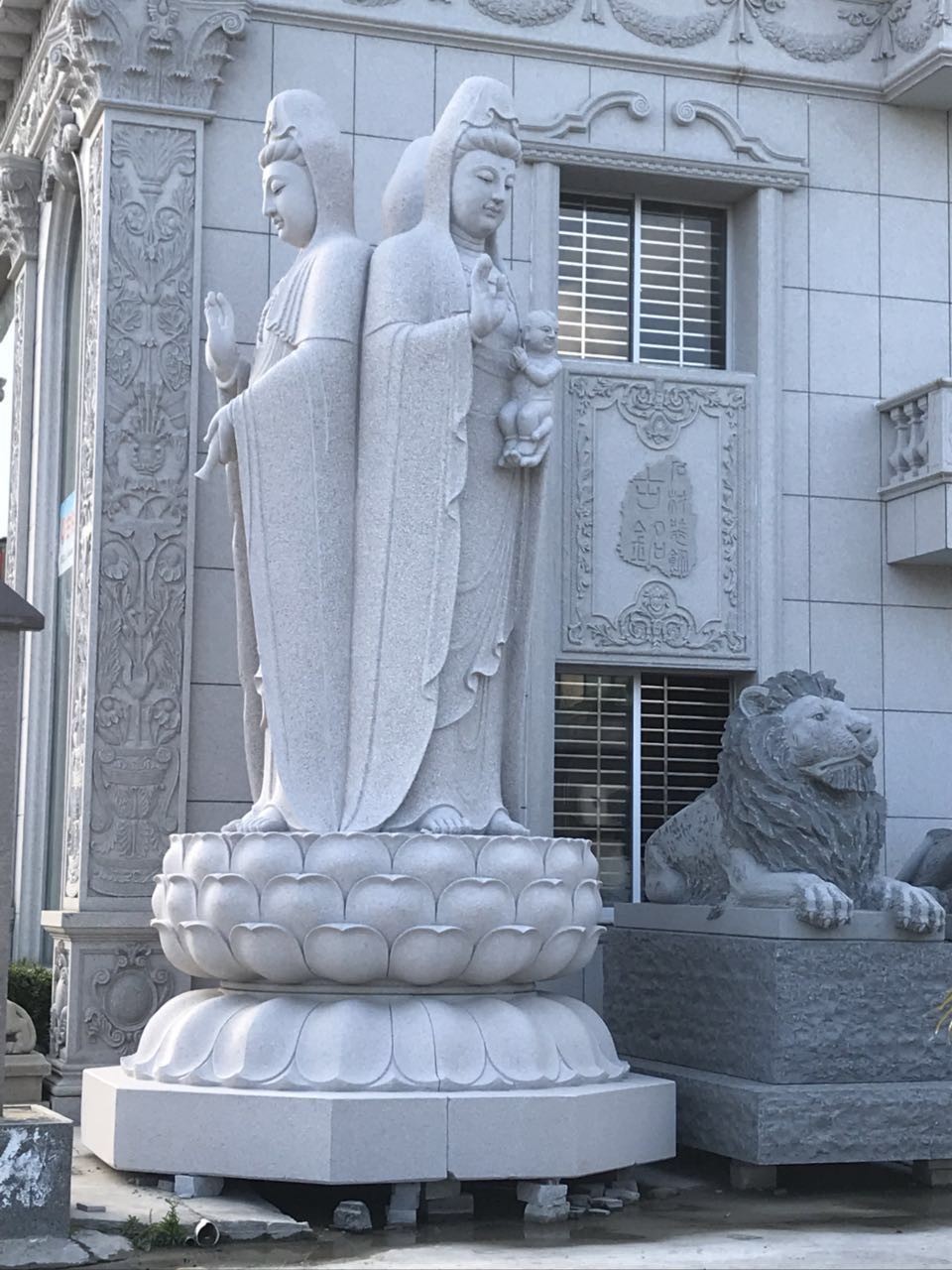 三面观音的左面是送子观音,送子观音是民间崇拜的佛教神祗。封建时代百姓认为虔诚拜神佛可以实现自己的心愿。于是不能有孕、或者祈求生男孩的迷信百姓会拜送子观音,以求得子嗣。
