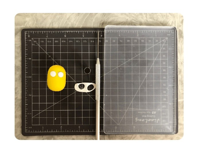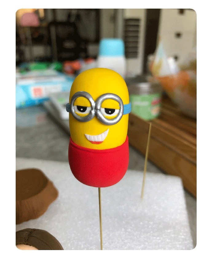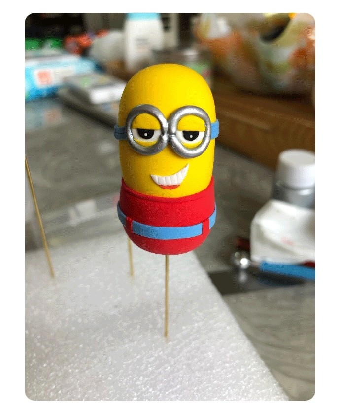 1.首先我们用黄色的粘土搓一个椭圆来制作小黄人的身体
