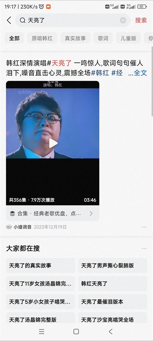 打开今日头条,输入你想听的歌曲 比如 韩红的《天亮了》