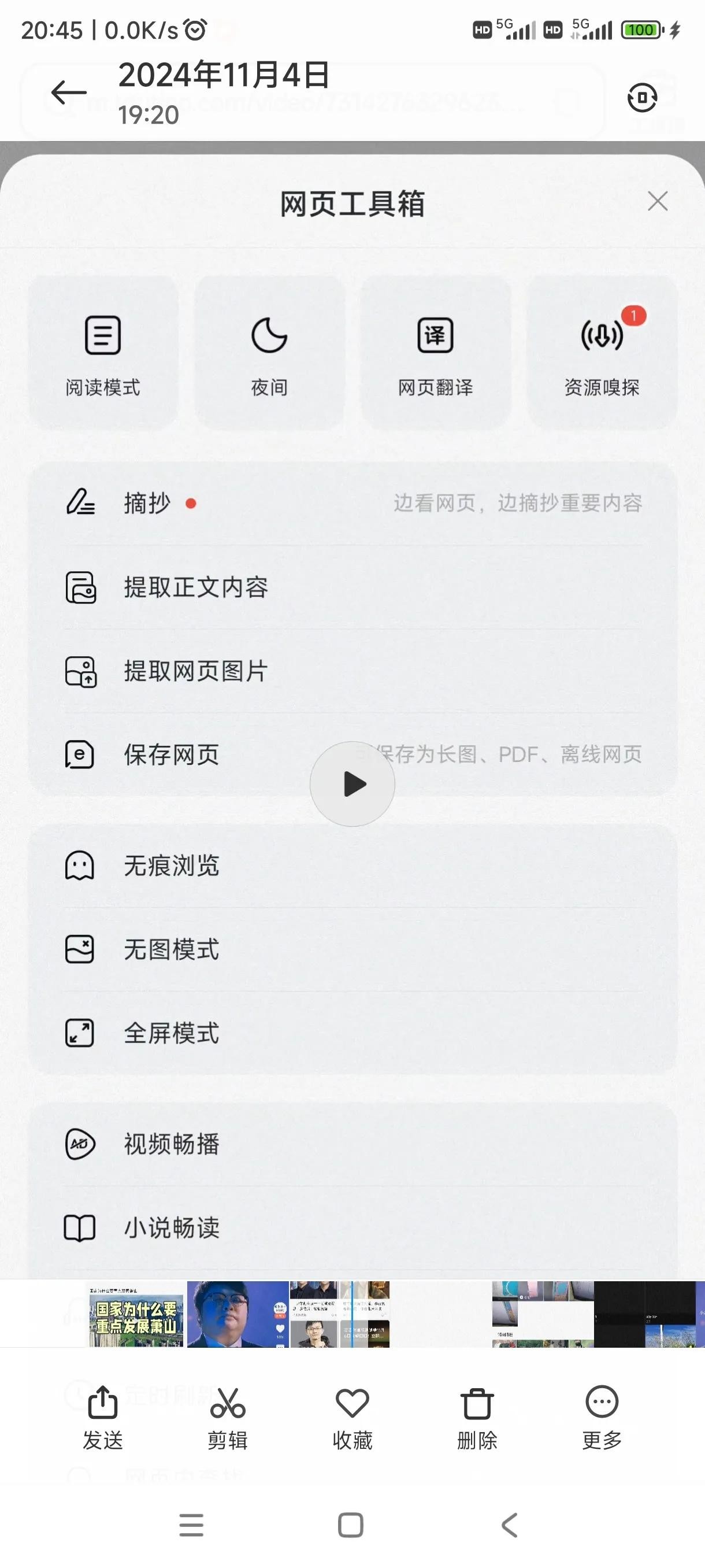 打开qq浏览器,复制刚才的链接,等几秒 打开右上角资源嗅探,并且下载视频保存到本地。
