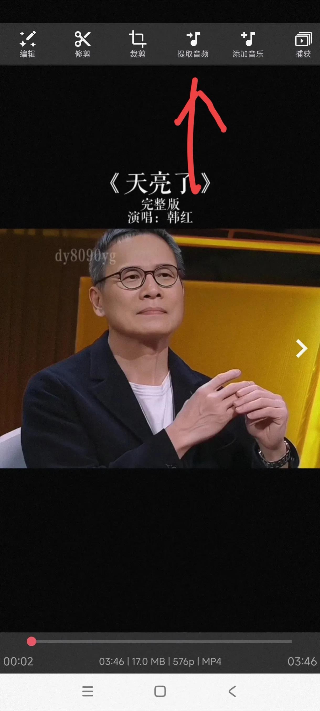打开刚才下载的视频,点上面的提取音频,选中mp3格式,右上角保存