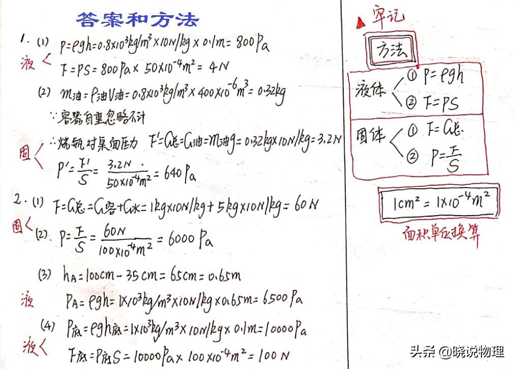 固体压强、液体压强的求解,一套公式全搞定,会方法超简单