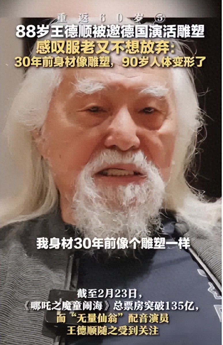 2025年2月25日,88岁表演艺术家王德顺宣布将赴德国参与活雕塑演出,这一等待30年的邀约引发舆论关注。曾以“最帅大爷”形象打破年龄偏见的他,此次以耄耋之躯挑战对体能要求极高的活雕塑艺术,被网友称为“银发逆袭的终极样本”。