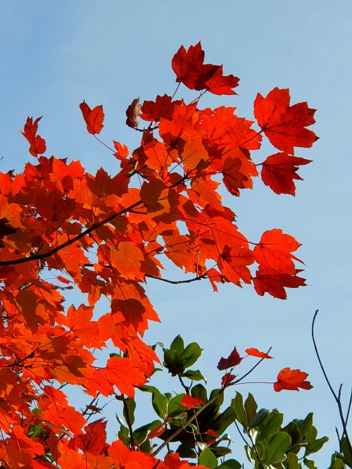 漫步在山顶的红枫大道,可以看到另一种亮色正展现着别样的“枫”情。这里枫叶以红色为主,兼有黄色、金色,五彩斑斓,流光溢彩,观枫指数应该是五星了,随手一拍,都是大片了。