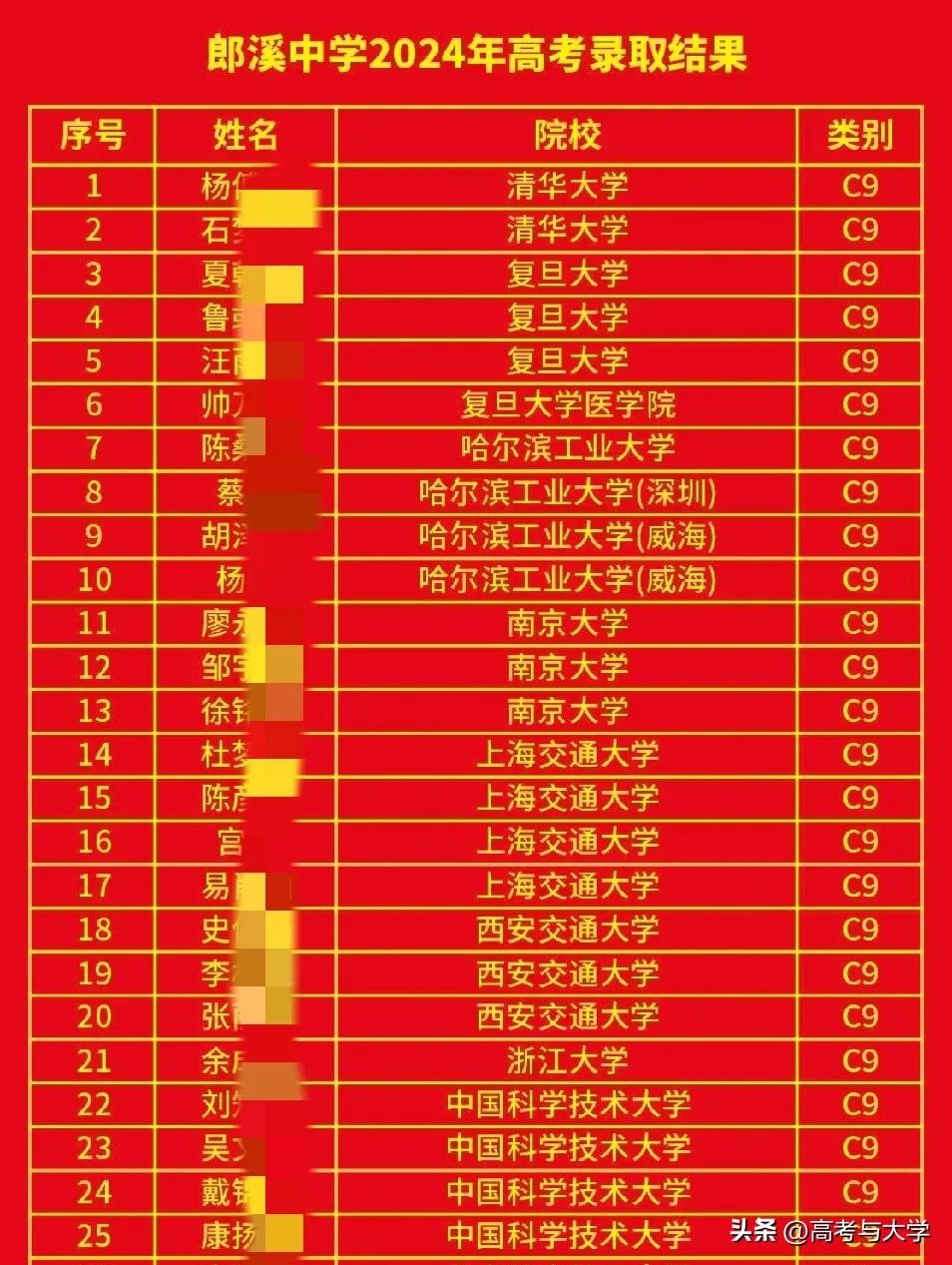 安徽县级郎溪中学2024年高考985录取96人,C9院校25人,太牛