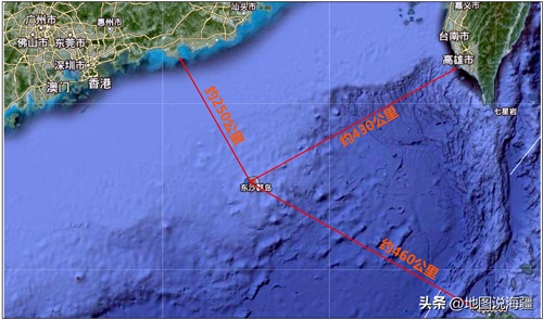 东沙岛位于南海东北部,北纬20°42′,东经116°43′,距离我国大陆最近约250公里,到台湾岛约430公里,至菲律宾约460海里,东沙岛扼守台湾海峡和巴士海峡等海上战略要道,东亚至印度洋以及亚、非、大洋洲国际航线在附近海域通过,地缘价值极为重要。目前,该岛由我国台湾省控制。