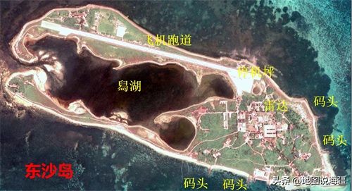东沙岛是东沙群岛中的唯一露出海面的岛屿,东西长约2.8km,南北宽约0.7km,面积1.8平方千米,面积仅次于西沙永兴岛。经过多年开发,台湾省不仅在岛上建设了公路、医院、图书馆、邮电局、发电站、码头等民用设施,也经营机场、飞机跑道、停机坪、港口、雷达站和军事指挥所等军民两用设施。其中,飞机跑道可以起降台湾空军的C-130运输机。