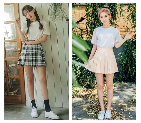 百褶裙作为最能代表青春校园的单品,无论是纯色还是格纹都一样好搭配,简单的圆领T和白球鞋就够了,青春就是这样简简单单。