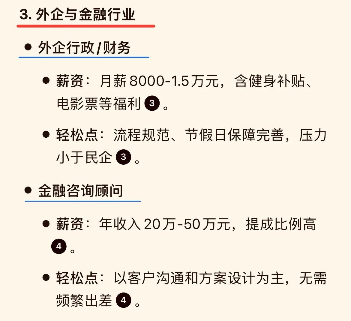 金融行业一直薪资待遇都很好,外企工作相对轻松时间自由!