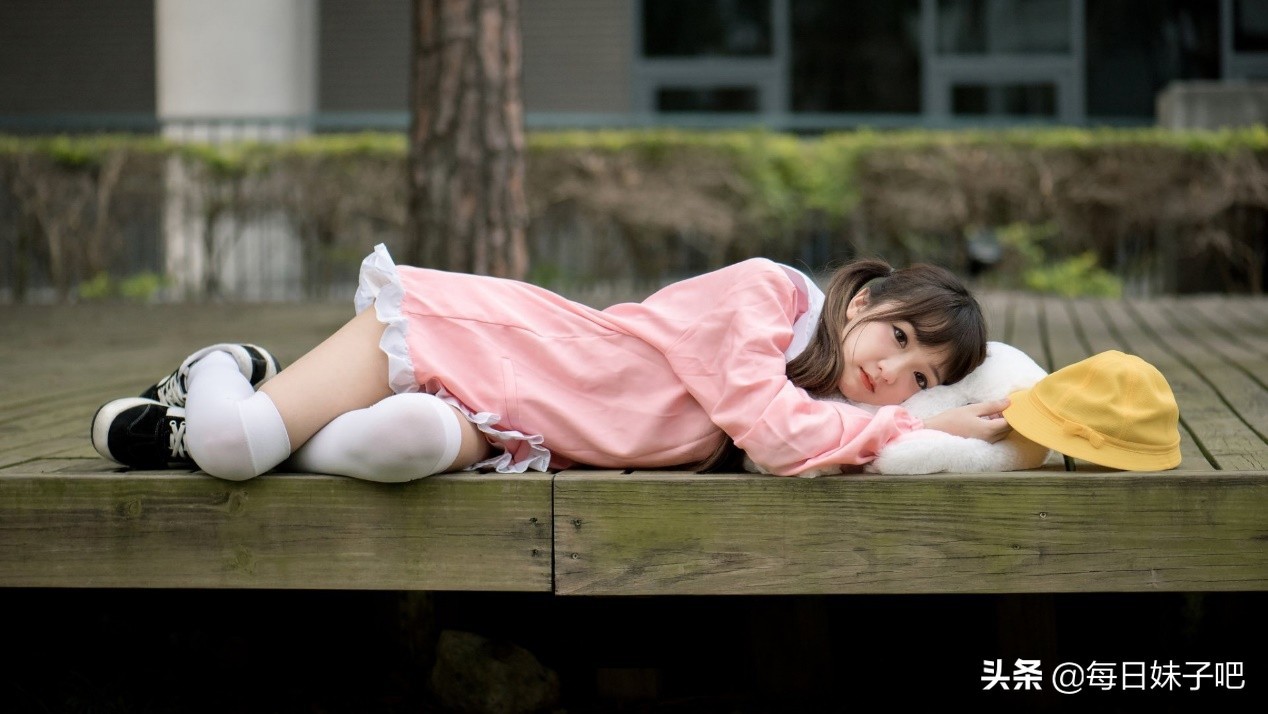 就像这位小萌妹一样,本身就十分呆萌可爱的她,那么稍加打扮一下就能让她萌力MAX,粉红色的连衣长裙,过膝白丝,双马尾,再加上一枚浅黄色的学生冒,简直会让人认为"这是哪的小学生?这么可爱",让人有一种给糖吃然后一顿摸头杀的冲动。当然,小萝莉是国家的未来,不能欺负他们哦。