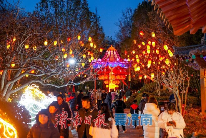 同时,花灯会还巧妙融合了泉水、诗词、李清照等文化元素,充分展现了济南泉水之美和齐鲁文化的独特魅力。大明湖、五龙潭、护城河等景区也同步亮灯,为市民和游客带来了一场视觉盛宴。(济南日报爱济南记者:周星权)