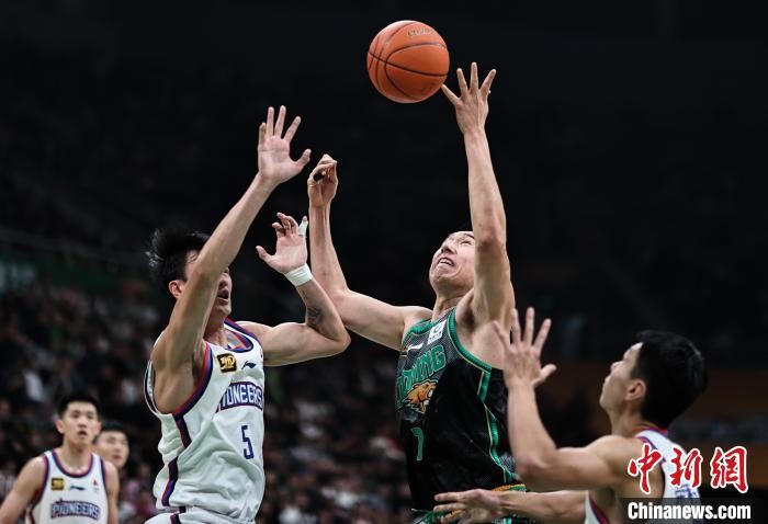 图为辽宁本钢队球员付豪(右二)在比赛中拼抢。中新社记者 于海洋 摄