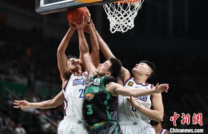 图为辽宁本钢队球员赵继伟(中)在比赛中拼抢。中新社记者 于海洋 摄