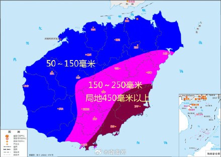 目前,在南海中西部海面有热带云团发展,未来24小时内将加强为热带低压,预计该热带低压生成后将向偏西方向移动,强度略有加强,并将于25日夜间在越南中部沿海地区登陆。受该热带低压和偏东急流共同影响,9月24日~26日,海南岛和南海中西部海面将有一次较强风雨天气过程。(海南省气象局、海口市气象台)