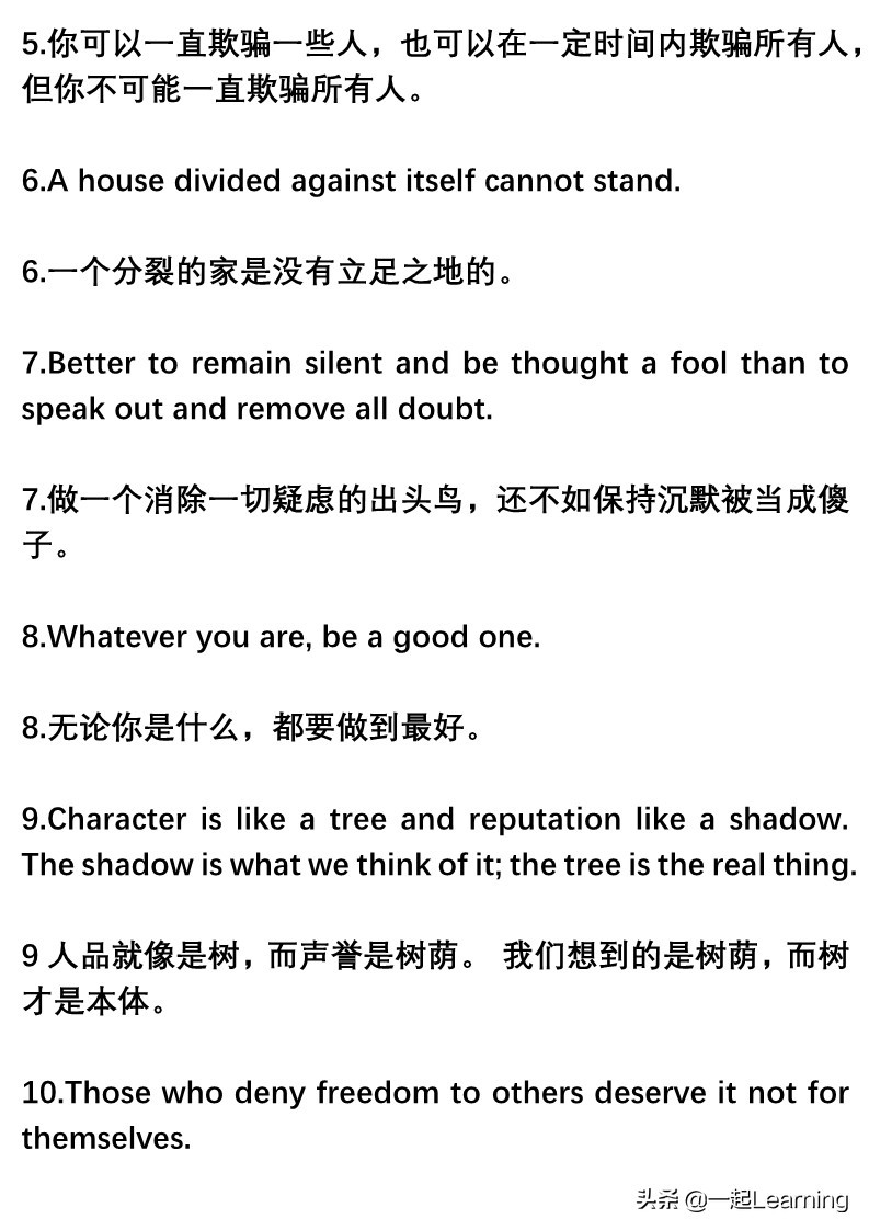 林肯的经典名言中英文对照