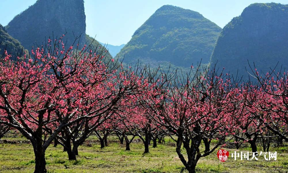 中国天气网广西站讯 三月的桂林春寒未尽,却已成为花的海洋。 在桂林恭城的嘉会镇十里桃花漫山遍野地盛开,让人仿佛置身于世外桃源,忘却了尘世的一切喧嚣。