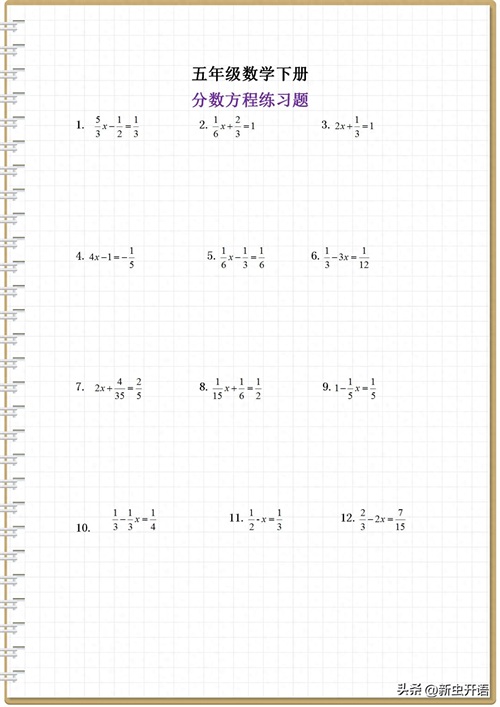 五年级下册分数方程专项练习题合集,多做多练