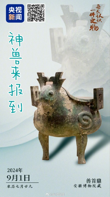 现藏于安徽博物院的兽首鼎,整体器型小巧,体态憨厚。鼎的一侧是兽首,双目圆睁凸出、头上犄角竖立相对;另一侧是呈扉棱状的兽尾。这个栩栩如生的神兽形象,一时分不清像羊、像鹿、还是像兔。你觉得像啥?