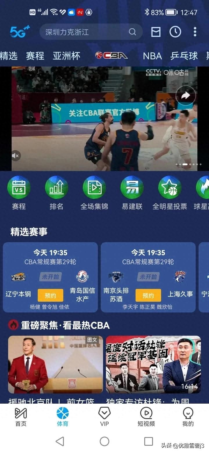 12日晚咪咕视频直播CBA常规赛第29轮(辽宁—青岛)等6场比赛